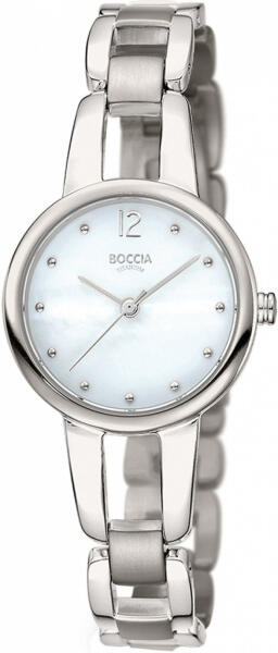 Márka: BOCCIA TITANIUM | Modell: 3290-01 | Garancia: 2 évek | Szín: gyöngyház | Szín: ezüst | Tok színe: ezüst árnyalat | Tok anyaga: titán | Táplálás: elem | Szíj anyaga: titán | Vízálloság: 50M/5ATM | Üveg: ásványi | Forma: kerek | Csatolás típusa: zsanérzár | Számjegyek a számlapon: indexek | Rendeltetés: női | Termék típusa: karórák | Típus: analóg | Szíj s