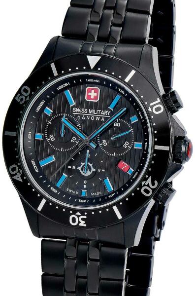Swiss Military Hanowa Flagship X Chrono férfi karóra SMWGI2100730 egy kerek formájú, fekete színű nemesacél óratokkal, fekete analóg számlappal és fekete nemesacél szíjjal rendelkező sportos Swiss Military Hanowa karóra. Az óra elemmel működő kvarc szerkezettel és 10 ATM vízállósággal rendelkezik, tehát fürdésre, úszásra használható. Ez a fantasztikus óra most 17590