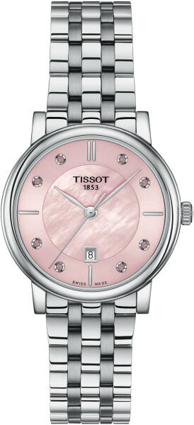 Tissot Carson Premium Lady női karóra T122.210. 11.159. 00 egy kerek formájú, ezüst színű nemesacél óratokkal, rózsaszín analóg számlappal és ezüst nemesacél szíjjal rendelkező elegáns Tissot karóra. Az óra elemmel működő kvarc szerkezettel és 5 ATM vízállósággal rendelkezik, tehát mérsékelten vízálló. Ez a fantasztikus óra most 185900 áron megrendelhető websh