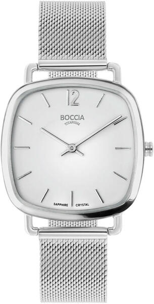 Márka: BOCCIA TITANIUM | Modell: 3334-06 | Garancia: 2 évek | Szín: ezüst | Tok színe: ezüst árnyalat | Tok anyaga: titán | Táplálás: elem | Szíj anyaga: nemesacél | Vízálloság: 30M/3ATM | Üveg: zafír | Forma: szögletes | Csatolás típusa: mesh típusú felcsatolás | Számjegyek a számlapon: indexek | Rendeltetés: női | Termék típusa: karórák | Típus: analóg | Szíj s