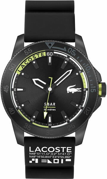 Lacoste Regatta férfi karóra 2011203 egy kerek formájú, fekete színű nemesacél óratokkal, fekete analóg számlappal és fekete szilikon szíjjal rendelkező divatos Lacoste karóra. Az óra elemmel működő kvarc szerkezettel és 5 ATM vízállósággal rendelkezik, tehát mérsékelten vízálló. Ez a fantasztikus óra most 66900 áron megrendelhető webshopunkban, melyre 24 hónap gar