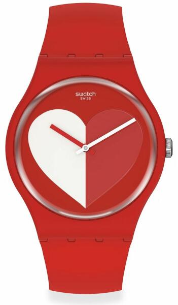 Swatch Half ❤️ White unisex karóra SO29Z112 egy kerek formájú, piros színű bio műanyag óratokkal, színes analóg számlappal és piros szilikon szíjjal rendelkező divatos Swatch karóra. Az óra elemmel működő kvarc szerkezettel és 3 ATM vízállósággal rendelkezik, tehát cseppálló. Ez a fantasztikus óra most 28720 áron megrendelhető webshopunkban, melyre 24 hónap garanc