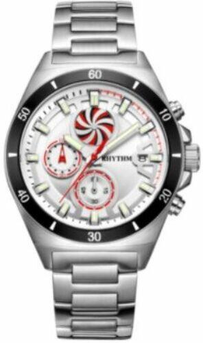 Rhythm Chronograph Quartz S1404S01 Japán férfi karóra. Dátum, kronográf, fluoreszkáló mutatók és indexek. 100m vízálló.