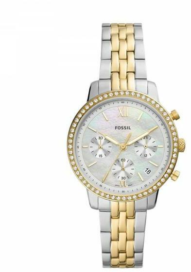 A Fossil Raquel női karóra ES5305 karóra házának anyaga nemesacél, színe ezüst, a szíjának anyaga nemesacél és a színe ezüst. Az óratok átmérője 26 mm, alakja négyszögű. A karóra üvege kristály (nehezen karcolható), szerkezete kvarc és vízállósága 5 atm (50m) (erősen cseppálló).