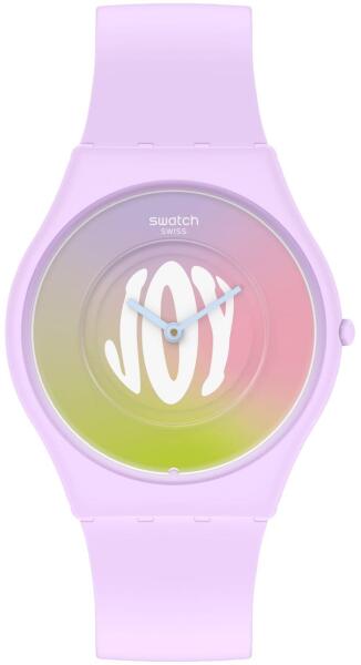 Swatch Time For Joy unisex karóra SS09V101 egy kerek formájú, lila színű biokerámia óratokkal, színes analóg számlappal és lila szilikon szíjjal rendelkező divatos Swatch karóra. Az óra elemmel működő kvarc szerkezettel és 3 ATM vízállósággal rendelkezik, tehát cseppálló. Ez a fantasztikus óra most 37030 áron megrendelhető webshopunkban, melyre 24 hónap garanciát adu