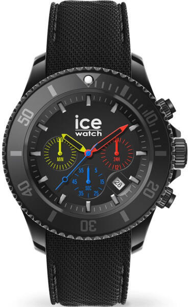 Ez egy Ice-watch márkájú, 019842 típus számú, ICE chrono férfi karóra. A tokjának anyaga nemesacél, a szíja szilikonból készült. Az óratok mérete 44 mm, üvege kristály és vízállósága 100 m. Az óra quartz szerkezettel ellátott. kronográf szerkezet