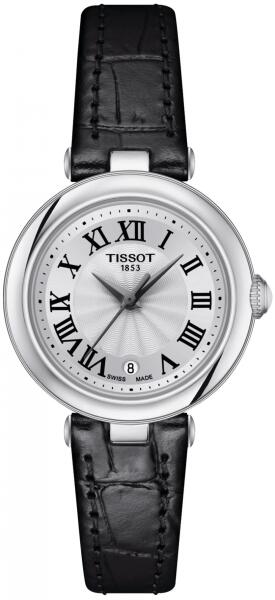 Tissot Bellissima Small lady női karóra T126.010. 16.013. 00 egy kerek formájú, ezüst színű nemesacél óratokkal, ezüst analóg számlappal és fekete valódi bőr szíjjal rendelkező klasszikus Tissot karóra. Az óra elemmel működő kvarc szerkezettel és 5 ATM vízállósággal rendelkezik, tehát mérsékelten vízálló. Ez a fantasztikus óra most 175900 áron megrendelhető webs
