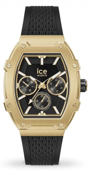 Az Ice Watch Boliday Golden Black női karóra 35mm 022866 karóra házának anyaga Alumínium, színe Arany, a szíjának anyaga Szilikon és a színe Fekete. Az óratok átmérője 35 mm, alakja Elliptikus. A karóra üvege Kristály (nehezen karcolható), szerkezete Kvarc és vízállósága 5 atm (50m) (erősen cseppálló).