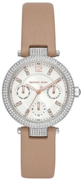 Szerkezet típusa: Elemmel működő quartz | Óratok anyaga: Nemesacél | Szíj: Valódi bőr | Üveg: Ásványi üveg | Vízállóság: Cseppálló | Óratok színe: Ezüst | Számlap színe: Ezüst | Szíj szín: Barna | Óratok szélesség: 33 mm | Funkciók: Dátum, Nap neve kijelzés, Második időzóna kijelzés | Díszítés: Cirkónia kövek (MK2913)