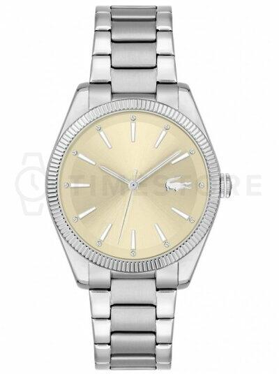 Lacoste Capucine női karóra 2001239 egy kerek formájú, ezüst színű nemesacél óratokkal, arany analóg számlappal és ezüst nemesacél szíjjal rendelkező divatos Lacoste karóra. Az óra elemmel működő kvarc szerkezettel és 3 ATM vízállósággal rendelkezik, tehát cseppálló. Ez a fantasztikus óra most 62900 áron megrendelhető webshopunkban, melyre 24 hónap garanciát adunk
