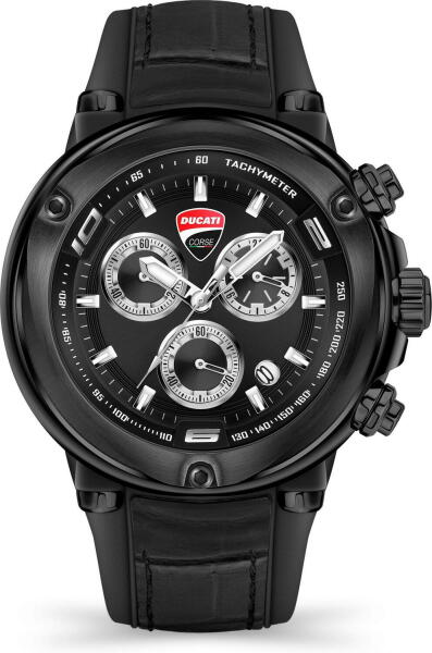 Ducati Corse Partenza férfi karóra DTWGO2018801 egy kerek formájú, fekete színű nemesacél óratokkal, fekete analóg számlappal és fekete szilikon szíjjal rendelkező sportos Ducati karóra. Az óra elemmel működő kvarc szerkezettel és 10 ATM vízállósággal rendelkezik, tehát fürdésre, úszásra használható. Ez a fantasztikus óra most 106330 áron megrendelhető webshopunkba