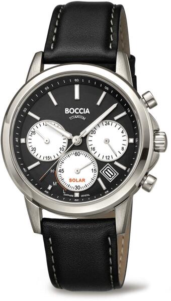 Márka: BOCCIA TITANIUM | Modell: 3742-01 | Garancia: 2 évek | Szín: fekete | Tok színe: ezüst árnyalat | Tok anyaga: titán | Táplálás: napelemes | Szíj anyaga: bőr | Funkciók: Stopper | Funkciók: Dátum – a hónap napja | Vízálloság: 100M/10ATM | Üveg: zafír | Forma: kerek | Számjegyek a számlapon: indexek | Rendeltetés: férfi | Termék típusa: karórák | Típus: analóg