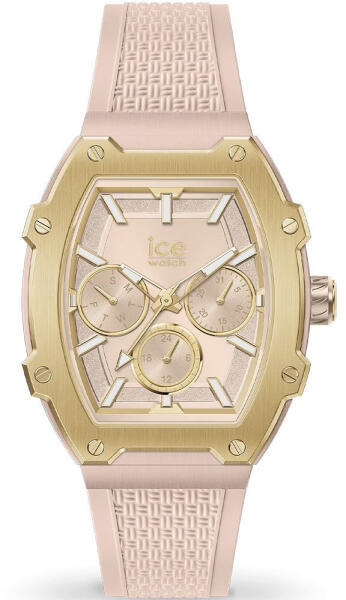 Az Ice Watch Boliday Creamy Nude női karóra 35mm 022864 karóra házának anyaga Alumínium, színe Arany, Bézs, a szíjának anyaga Szilikon és a színe Bézs. Az óratok átmérője 35 mm, alakja Elliptikus. A karóra üvege Kristály (nehezen karcolható), szerkezete Kvarc és vízállósága 5 atm (50m) (erősen cseppálló).