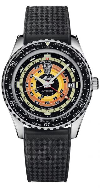 A Mido Ocean Star Decompression Worldtimer férfi karóra szett M026.829. 17.051. 00 karóra házának anyaga Nemesacél, színe Ezüst, a szíjának anyaga Szilikon, Nemesacél és a színe Ezüst, Fekete. Az óratok átmérője 41 mm, alakja Kerek. A karóra üvege Zafír (karcolásmentes), szerkezete Automata és vízállósága 20 atm (200m) (búvárkodásra is alkalmas). Automata Mido Caliber