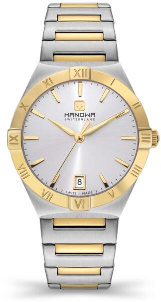Hanowa Surselva női karóra HAWLH2200460 egy kerek formájú, ezüst színű nemesacél óratokkal, ezüst analóg számlappal és bicolor nemesacél szíjjal rendelkező sportos Hanowa karóra. Az óra elemmel működő kvarc szerkezettel és 5 ATM vízállósággal rendelkezik, tehát mérsékelten vízálló. Ez a fantasztikus óra most 73520 áron megrendelhető webshopunkban, melyre 24 hóna