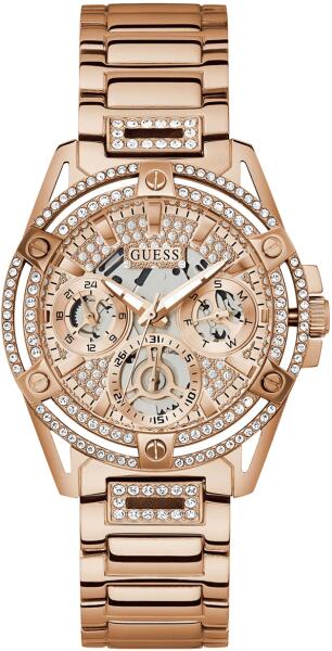 Eredeti Doboz, Pontos óraszerkezet , Kiváló minőségű anyagok, kifinomult tervezés 2év Magyar jótállás, 15 napos pénzvisszafizetés Guess Queen női óra karóra GW0464L3 Multifunctional nemesacél tok, rózsa arany bevonat, csiszolt nemesacél szíj, rózsa arany bevonat, csiszolt, összecsukható kapocs Quartz szerkezet, elemes naptári nap kijelző, dátumkijelzés, 24 órás kijelz