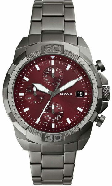 A Fossil Bronson Chrono FS6017 egy modern férfi karóra. A készülék egy elegáns szürke karperecből, egy acél borításból és egy ásványi üveggel borított bordó számlapból áll. Hónapos dátummal és kronográffal rendelkezik. A készülék vízállósága