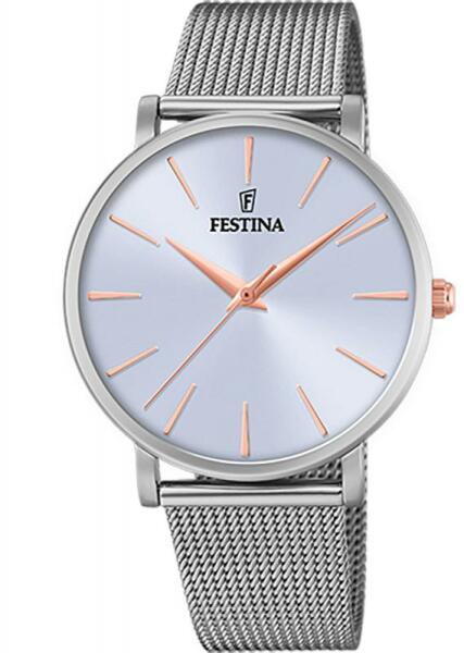 A Festina 20475/3 női órát a minimalizmus jellemzi a legmagasabb minőséggel kombinálva. A gyönyörű ezüst színű design már első pillantásra elnyeri tetszését. Világos és egyszerű kijelzőt kínál indexekkel. Az ezüstös kivitel a modell finom kék árnyalattal kombinálva tökéletesen alá tudja támasztani egyediségét. Az ezüst az erő és a finom nőiesség vízióinak s