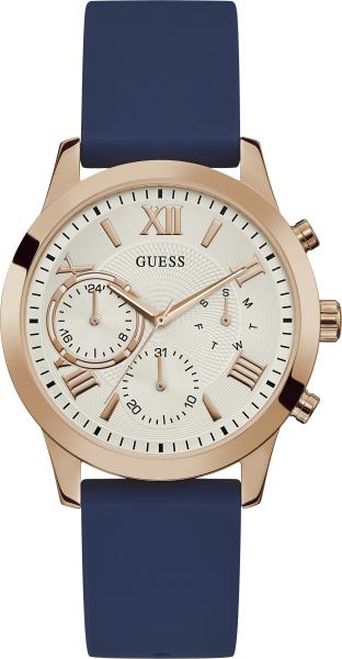 Márka: GUESS | Modell: W1265L1 | Szín: kék | Tok színe: rózsaarany | Tok anyaga: nemesacél | Táplálás: elem | Szíj anyaga: műanyag | Funkciók: 24-órás számlap | Funkciók: Dátum – a hónap napja | Funkciók: Dátum – a hét napja | Karóra/számlap átmérője: 40 mm | Vastagság: 9 mm | Vízálloság: 50M/5ATM | Üveg: ásványi | Forma: kerek | Csatolás típusa: standard fel