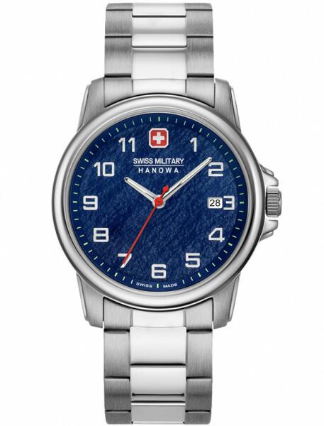 Swiss Military Hanowa Swiss Rock férfi karóra 06-5231.7. 04.003 egy kerek formájú, ezüst színű nemesacél óratokkal, kék analóg számlappal és ezüst nemesacél szíjjal rendelkező divatos Swiss Military Hanowa karóra. Az óra elemmel működő kvarc szerkezettel és 5 ATM vízállósággal rendelkezik, tehát mérsékelten vízálló. Ez a fantasztikus óra most 76720 áron megrendel