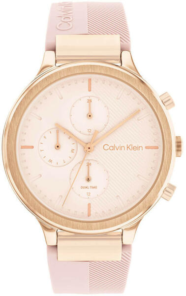 Ez egy Calvin Klein márkájú, CK25200243 típus számú, Energize női karóra. A tokjának anyaga nemesacél, a szíja műanyagból készült. Az óratok mérete 40 mm, üvege kristály és vízállósága 30 m. Az óra quartz szerkezettel ellátott. analóg szerkezet