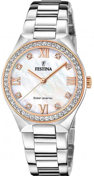 Női Festina 20658/1 Napelemes - napfény vagy mesterséges fény által feltöltött akkumulátorral működik, az óra normál viselés közben töltődik fel, nincs szükség az akkumulátor cseréjére. Analóg karóra - kvarc- vagy mechanikus szerkezetű óra, amely az időt mutatók és számlap segítségével mutatja. Vízállósági táblázat 3 ATM/30m víz- és esőálló 5 ATM/50m az