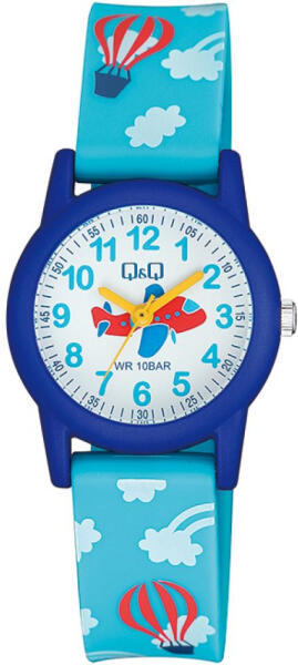 Okozzon örömet gyermekének csodálatos Q&Q márkájú órával. Első pillantásra felkelti a figyelmet a repülővel, színes mutatókkal és számokkal ellátott számlapja, amely bebiztosítja a jó olvashatóságot. A repülő léggömbökkel ellátott kék szíjat szeretik meg legjobban a gyermekek.