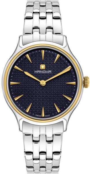 Hanowa Vanessa női karóra 16-7092.55. 003 egy kerek formájú, ezüst színű nemesacél óratokkal, kék analóg számlappal és ezüst nemesacél szíjjal rendelkező klasszikus Hanowa karóra. Az óra elemmel működő kvarc szerkezettel és 5 ATM vízállósággal rendelkezik, tehát mérsékelten vízálló. Ez a fantasztikus óra most 54320 áron megrendelhető webshopunkban, melyre 24 hó