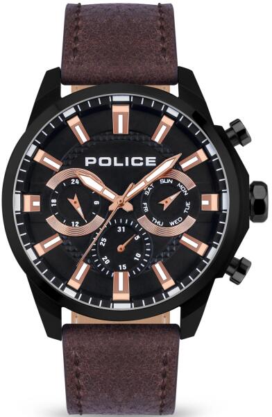 Police Menelik férfi karóra PEWJF2204204 egy kerek formájú, fekete színű nemesacél óratokkal, fekete analóg számlappal és barna valódi bőr szíjjal rendelkező divatos Police karóra. Az óra elemmel működő kvarc szerkezettel és 5 ATM vízállósággal rendelkezik, tehát mérsékelten vízálló. Ez a fantasztikus óra most 69900 áron megrendelhető webshopunkban, melyre 24 hón