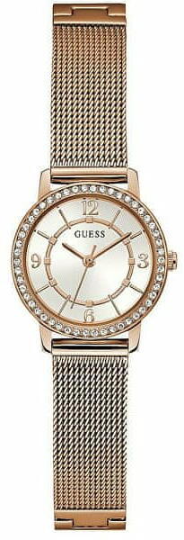Elegáns női Guess GW0534L3 karóra a Melody kollekcióból. QUARTZ - a kvarcmű a pontos időimpulzusok előállítására utal egy szilíciumkristály segítségével. Egyszerűsége miatt nagyon megbízható, és csak kevés energiát fogyaszt, ami az akkumulátor élettartamára is hatással van. Az első kvarckristályos órák 1950 körül készültek Kanadában. Ásványi üveg- Az ásván