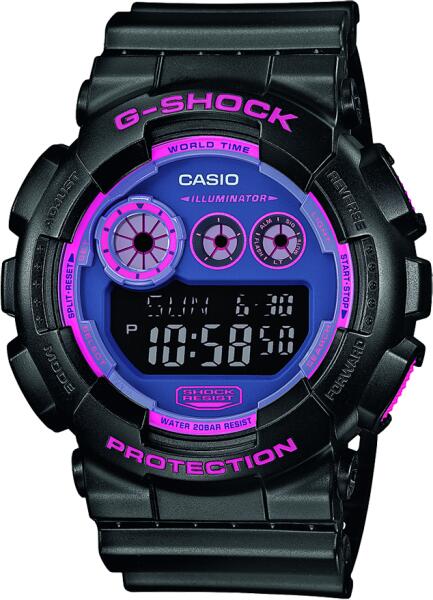 Casio G-Shock GD-120N-1B4ER karóra – ütésálló tokozás – vízállóság 200m mélységig– 31 időzóna – 5 egymástól független ébresztő, visszaszámláló és stopper– automata világítás, fényriasztás – 7 év elem élettartamméret: 55×51,2×17,4 mmsúly: 72 g