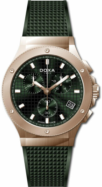 Doxa 166.90. 131.26. LE Férfi Karóra - D-Sport Magyarország Limitált KiadásA Doxa 166.90. 131.26. LE férfi karóra egy exkluzív, Magyarország számára készített limitált kiadás. A zöld számlapot a magyar zászló díszíti, amely egyedi megjelenést kölcsönöz az órának. A 43 mm átmérőjű rozsdamentes acél tok rose arany PVD bevonattal van ellátva, amely elegáns és tartó