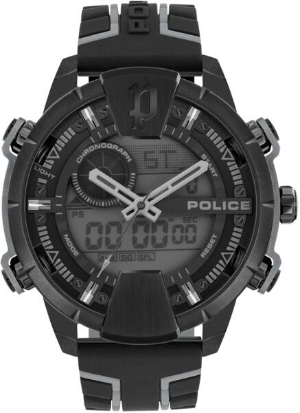 Police férfi karóra PEWJP2110203 egy kerek formájú, fekete színű nemesacél óratokkal, szürke analóg-digitális számlappal és fekete szilikon szíjjal rendelkező sportos Police karóra. Az óra elemmel működő kvarc szerkezettel és 5 ATM vízállósággal rendelkezik, tehát mérsékelten vízálló. Ez a fantasztikus óra most 117900 áron megrendelhető webshopunkban, melyre 24 h