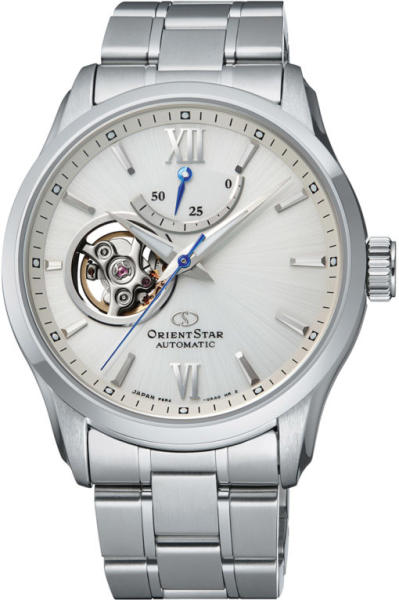 Orient Star 50 Open Heart RE-AT0003S00B férfi karóra. Egy stílusos karóra, amely szinte minden alkalomra viselhető. Orient F6R42 Japán automata szerkezet 50 óra járástartalékkal. Kézzel is felhúzható másodperc stoppos szerkezet, üveg hátlap.