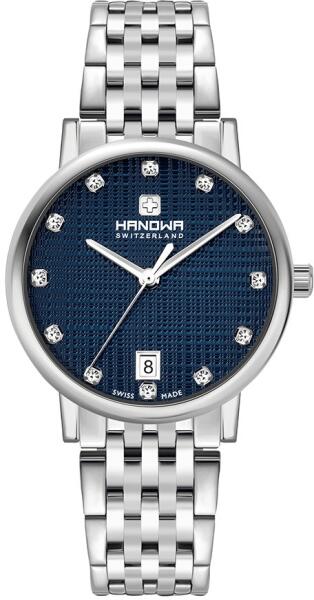 Hanowa Rivera női karóra HAWLH2200503 egy kerek formájú, ezüst színű nemesacél óratokkal, kék analóg számlappal és ezüst nemesacél szíjjal rendelkező divatos Hanowa karóra. Az óra elemmel működő kvarc szerkezettel és 5 ATM vízállósággal rendelkezik, tehát mérsékelten vízálló. Ez a fantasztikus óra most 60720 áron megrendelhető webshopunkban, melyre 24 hónap gar