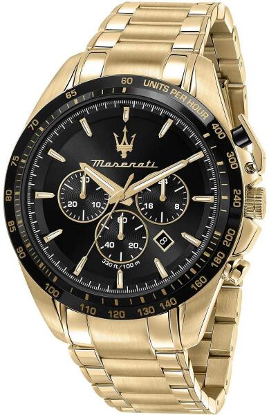 Maserati Traguardo férfi karóra R8873612041 egy kerek formájú, arany színű nemesacél óratokkal, fekete analóg számlappal és arany nemesacél szíjjal rendelkező sportos Maserati karóra. Az óra elemmel működő kvarc szerkezettel és 10 ATM vízállósággal rendelkezik, tehát fürdésre, úszásra használható. Ez a fantasztikus óra most 139900 áron megrendelhető webshopunkban,