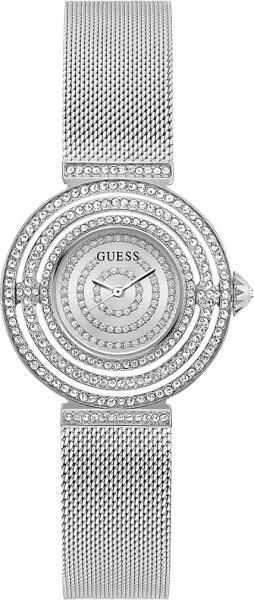 Női Guess GW0550L1 karóra QUARTZ - a kvarcmű a pontos időimpulzusok előállítására utal egy szilíciumkristály segítségével. Egyszerűsége miatt nagyon megbízható, és csak kevés energiát fogyaszt, ami az akkumulátor élettartamára is hatással van. Az első kvarckristályos órák 1950 körül készültek Kanadában. Ásványi üveg- Az ásványi üveg a leggyakrabban használt