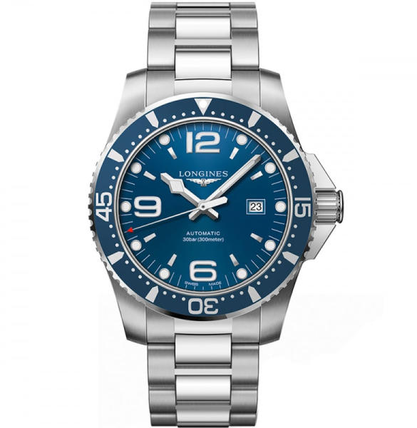 Gyártó: Longines Modell: L3.841 4.9 Átmérő: 44 mm korona nélkül Nem: Férfi Szíj szélesség: 22 mm Típus: Analóg Tok magasság: 55 mm Tok vastagság: 12 mm Üveg: Zafírkristály Vízállóság: 300 m Tok színe: Ezüst Tok anyaga: Nemesacél Szíj színe: Ezüst Szíj anyaga: Nemesacél Szerkezet: Svájci automata Számlap színe: Sötétkék