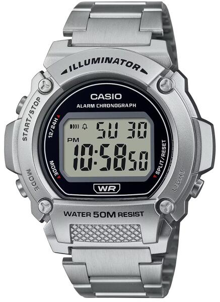 - Tok alakja: kerek - Fémszíj. - Tok és karperec anyaga: acél - Mechanizmus: kvarc, elemmel működik - Üveg: ásványi (edzett, rendkívül ellenálló a törésre, nehéz megkarcolni). - Vízállóság: WR. 100M (10 ATM) - úszni lehet vele, merülni nem (aqualung). - 12 és 24 órás időfunkcióval. Megjeleníti az egész nap órákat, és lehetővé teszi a reggeli és a délutáni órá