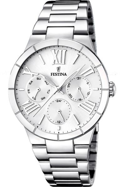 Gyártó: Festina Modell: 16716 Leírás: Divat #Festi na# karórák a Mademoiselle kollekcióból. Ideális kiegészítők nőknek, akik előnyben részesítik az analóg és kerek alakú karórákat. A belül ellenálló 9 mm magas tokban, melyet minőségi acél alkot, megbízható elemes (quartz) gépezetet talál, mely 38 mm átmérőjű számlapot működtet. A számlapot ellenálló ásván