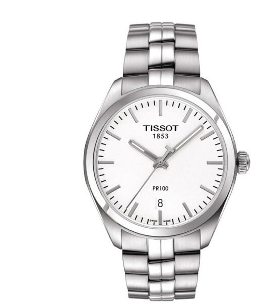 Tissot PR 100 férfi karóra T101.410. 11.031. 00 egy kerek formájú, ezüst színű nemesacél óratokkal, ezüst analóg számlappal és ezüst nemesacél szíjjal rendelkező klasszikus Tissot karóra. Az óra elemmel működő kvarc szerkezettel és 10 ATM vízállósággal rendelkezik, tehát fürdésre, úszásra használható. Ez a fantasztikus óra most 139900 áron megrendelhető webshop