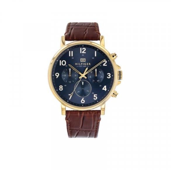 Divat Tommy Hilfiger karórák a Daniel kollekcióból. Ideális kiegészítők férfiaknak , akik előnyben részesítik az analóg és kerek alakú karórákat. A belül ellenálló 10 mm magas tokban, melyet minőségi acél alkot , megbízható elemes (quartz) gépezetet talál, mely 44 mm átmérőjű számlapot működtet. A számlapot ellenálló ásványi üveg véd. A tok arany, számlap