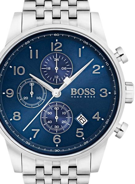 Luxus Hugo Boss karórák a Navigator kollekcióból. Ideális kiegészítők férfiaknak , akik előnyben részesítik az analóg és kerek alakú karórákat. A belül ellenálló 11 mm magas tokban, melyet minőségi acél alkot , megbízható elemes (quartz) gépezetet talál, mely 44 mm átmérőjű számlapot működtet. A számlapot ellenálló ásványi üveg véd. A tok ezüst, számlap k