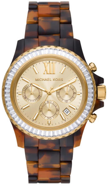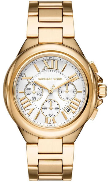 Vízállóság szűrő: mérsékelten vízálló | Szerkezet típusa: Elemmel működő quartz | Óratok anyaga: Nemesacél | Szíj: Fémszíj | Üveg: Ásványi üveg | Vízállóság: 50 m | Óratok színe: Arany | Számlap színe: Ezüst | Szíj szín: Arany | Óratok szélesség: 45 mm | Funkciók: Dátum, Stopper, 24 órás kijelző (MK7270)