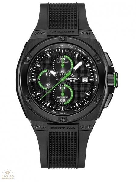 Vízállóság szűrő: búvárkodásra alkalmas | Szerkezet típusa: Mechanikus (automata) | Óratok anyaga: Nemesacél | Szíj: Kaucsuk | Üveg: Zafír üveg | Vízállóság: 200 m | Óratok színe: Fekete | Számlap színe: Fekete | Szíj szín: Fekete | Óratok szélesség: 46 mm | Funkciók: Dátum, Stopper (C023.727. 17.051. 00)