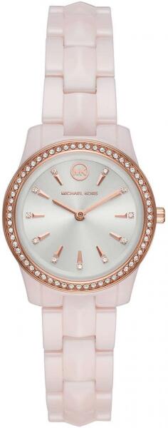 Vízállóság szűrő: mérsékelten vízálló | Szerkezet típusa: Elemmel működő quartz | Óratok anyaga: Nemesacél | Szíj: Fémszíj | Üveg: Ásványi üveg | Vízállóság: 50 m | Óratok színe: Rosé | Számlap színe: Ezüst | Szíj szín: Rosé | Óratok szélesség: 33 mm | Szíj szélessége: 18 mm | Díszítés: Cirkónia kövek (MK4641)