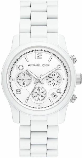 Szerkezet típusa: Elemmel működő quartz | Óratok anyaga: Nemesacél | Szíj: Valódi bőr | Üveg: Ásványi üveg | Vízállóság: 50 m | Óratok színe: Rosé | Számlap színe: Fehér | Szíj szín: Rózsaszín | Óratok szélesség: 39 mm | Funkciók: Dátum, Stopper, Második időzóna kijelzés, Tachymeter | Díszítés: Cirkónia kövek (MK6935)