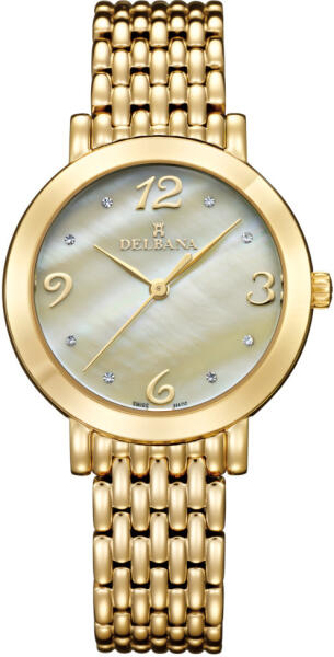Swiss Made női karóra! Sárga arany színű IPG bevonatú rozsdamentes acél óratok. Sárga arany színű IPG bevonatú mutatók és rakott arab számok. Az IPG (vákumionos) bevonat kopás-, és korrózió álló. A pezsgő színű gyöngyház számlapon kristály díszek. Karcálló zafír üveg. Megbízható svájci Ronda quartz szerkezet. Magas minőségű, sárga arany színű IPG bevonat