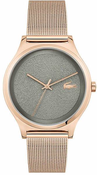 Lacoste Nikita női karóra 2001193 egy kerek formájú, rosegold színű nemesacél óratokkal, szürke analóg számlappal és rosegold nemesacél szíjjal rendelkező divatos Lacoste karóra. Az óra elemmel működő kvarc szerkezettel és 3 ATM vízállósággal rendelkezik, tehát cseppálló. Ez a fantasztikus óra most 38340 áron megrendelhető webshopunkban, melyre 24 hónap garanciát a