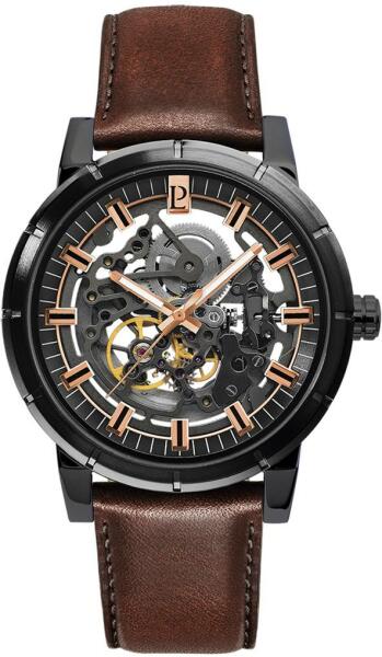 Automata felhúzású, mechanikus férfi karóra. Anyaga 100% rozsdamentes acél. Fekete színű PVD bevonatú 3 részes tok. Gyönyörű polírozással és matt fénnyel. Megbízható másodperc stoppos Seagull automata szerkezet. Magas minőségű barna bőrszíj. Átlátszó üveg hátlap és látványos "Skeleton" számlap. Egyedi megjelenés! A márka prémium kategóriás órája! Óraszerke